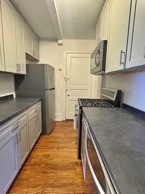 Discover this three-bedroom, one-bathroom apartment in downtown York, PA. The unit features hardwood floors throughout and stainless steel appliances in the kitchen, including a dishwasher. A washer and dryer are conveniently located in the apartment. The bathroom includes a tub/shower combination. Situated within walking distance of downtown shops and services, this residence offers a practical layout and central location for easy access to local amenities.